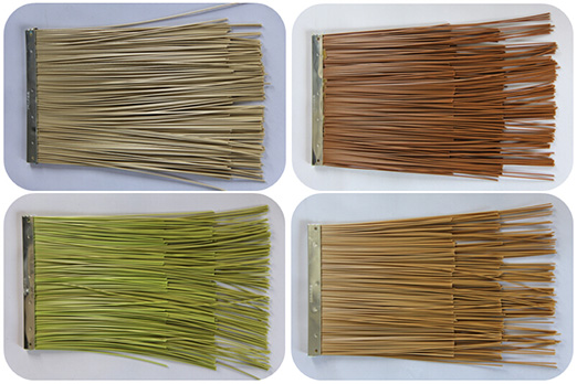 科佰仿真茅草(稻草)瓦,100%仿真,不褪色,色澤美觀高雅,不生銹、不腐爛、不生蟲、耐用、防火、便于安裝,是仿天然茅草屋頂最理想的裝飾材料。